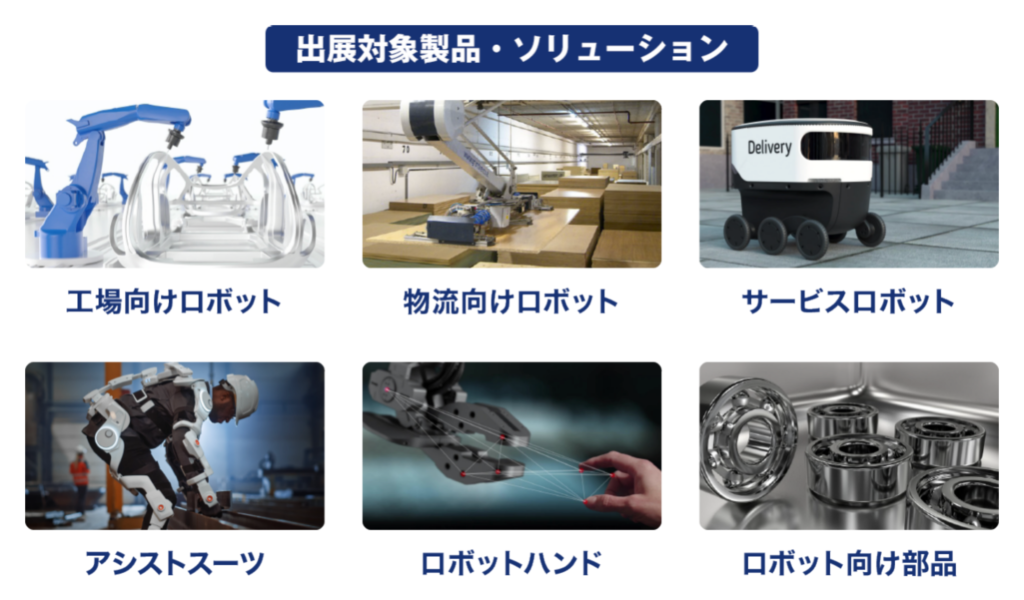 本展示会では、産業用ロボットやサービスロボット、AMR・AGV、ロボット関連部品、開発技術、制御・システムソリューションなど、ロボットの開発から導入・活用までを網羅する技術・製品が一堂に集まります。